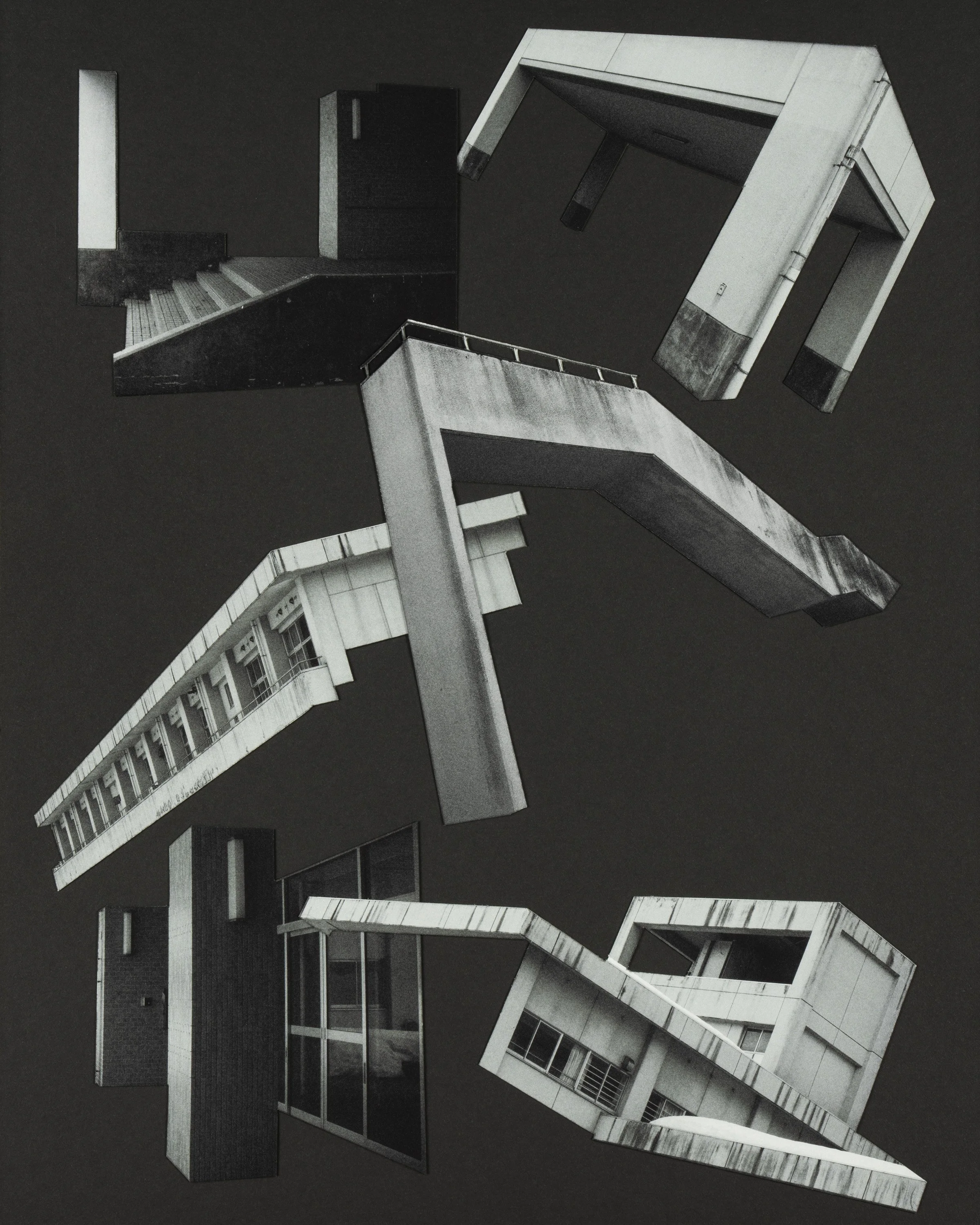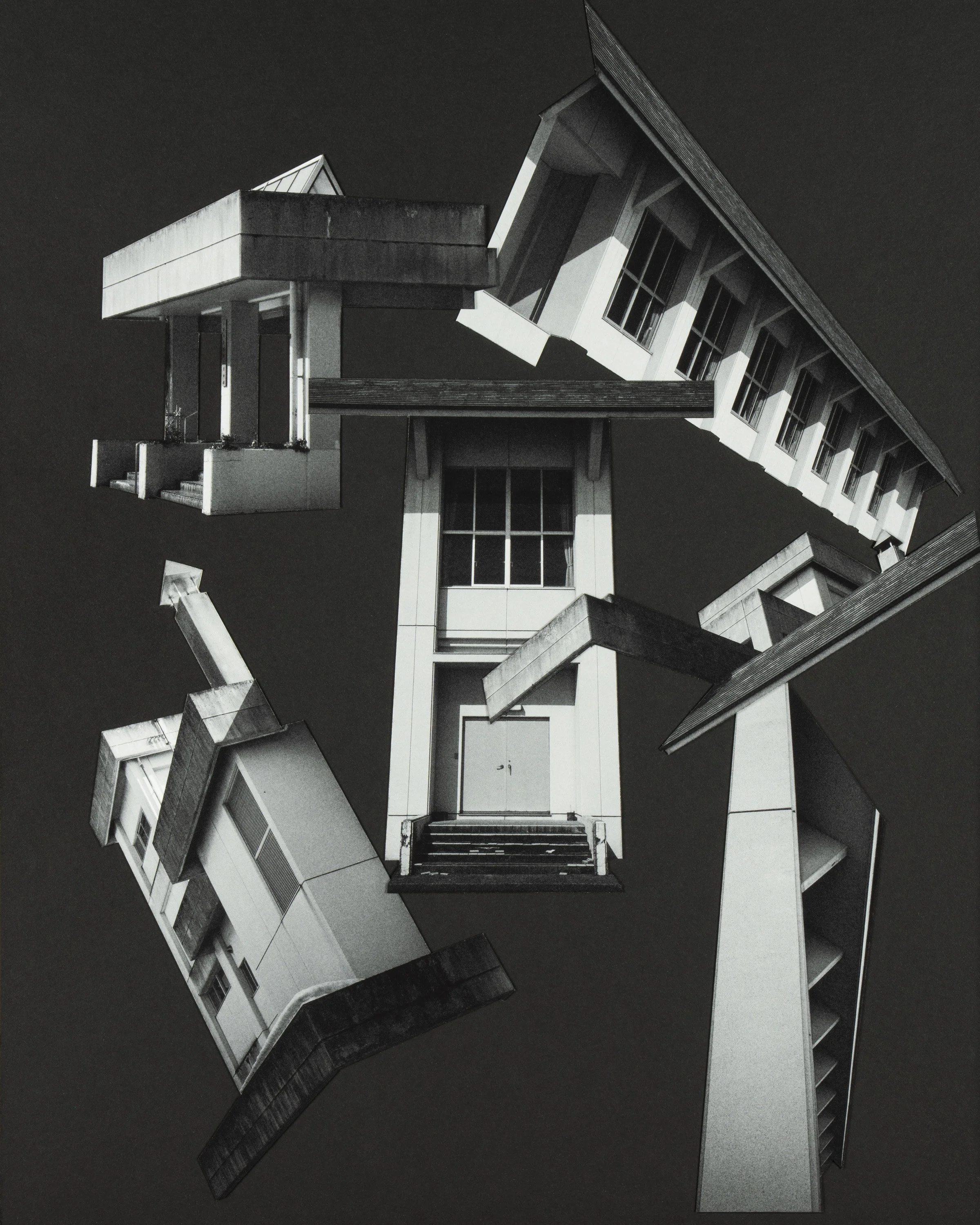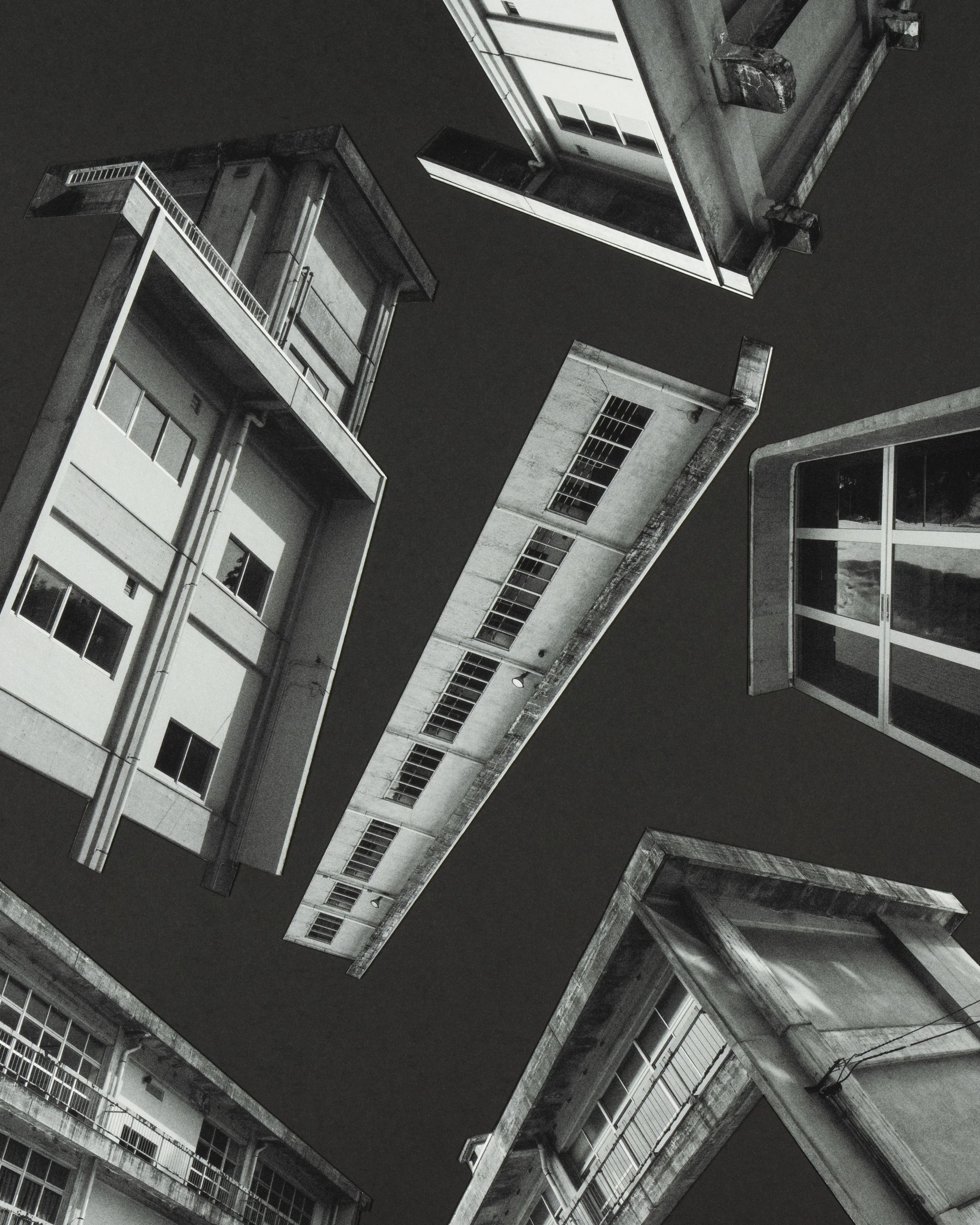 Kūseki, meaning “empty seats,” responds to this ongoing disappearance. Through photography and collage, I document closed school buildings in Niigata Prefecture, where I grew up—one of the regions most deeply affected by depopulation. Reimagined as fragmented visual forms, the collages are composed from multiple photographs that are precisely cut, rearranged, and reassembled into disjointed configurations. The disrupted architecture evokes a sense of instability and fragmentation, mirroring the slow disintegration of these institutions and the communities they once anchored.